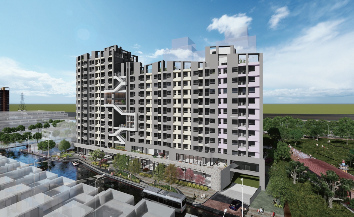 相關簡介:本案位於臺中烏日高鐵特區,鄰近烏日舊市區,交通區位良好,且公共服務機能完善,基地位置北面大肚山,南臨烏溪水岸景觀,周邊有多個公園開放空間,以「串門子」為設計概念主軸,透過留設大面積公共開放空間串聯結合周邊公共資源,廣邀四週的居民至本基地遊逛,形塑地方的場所精神,創造與地方共享共好的都市空間。